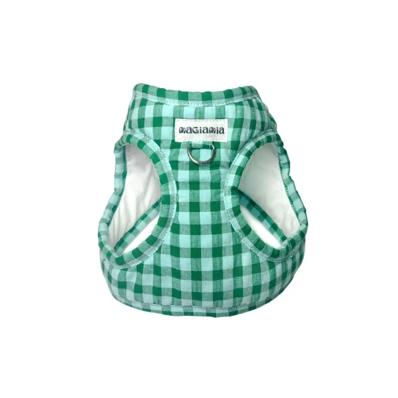 Arnés de MagiaMia tipo body, diseñado para ofrecer mayor sujeción y comodidad en cada paseo. Su formato envuelve el pecho del perro, repartiendo mejor la presión y aportando más seguridad. ¡El arnés perfecto para los peludos que no les gusta meter el arnés por la cabecita! Se mete por las patitas.