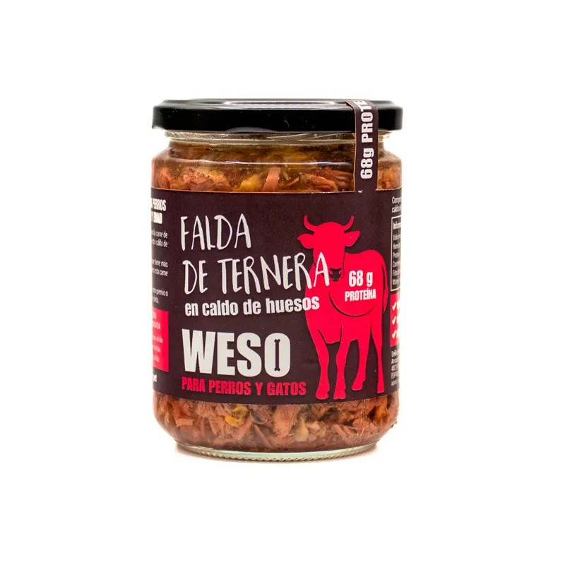 Para hacer este producto deshuesamos a mano la carne de falda de ternera y lo envasamos junto con nuestro caldo de huesos de más de 20 horas de cocción.