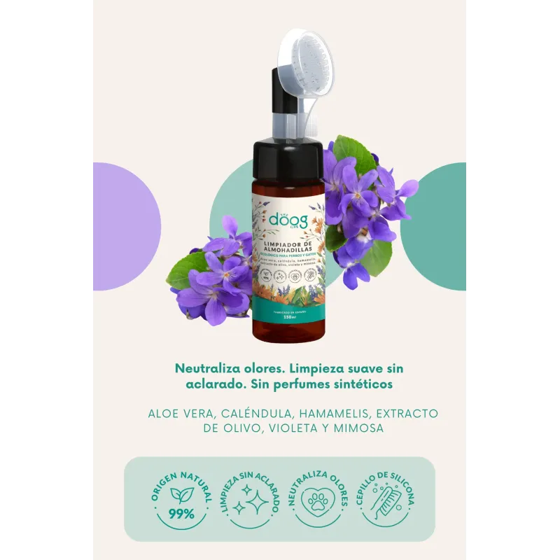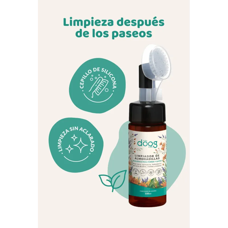 El Limpiador de Almohadillas de Doog es una espuma limpiadora natural, sin aclarado diseñada para limpiar las patitas del perro después de los paseos. Elimina suciedad y olores, mientras cuida e hidrata las almohadillas gracias a ingredientes suaves, siendo ideal para uso diario incluso en pieles sensibles.