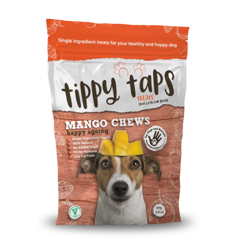 Los snacks de mango Tippy Taps son un delicioso premio natural que tu mascota disfrutará durante mucho tiempo.