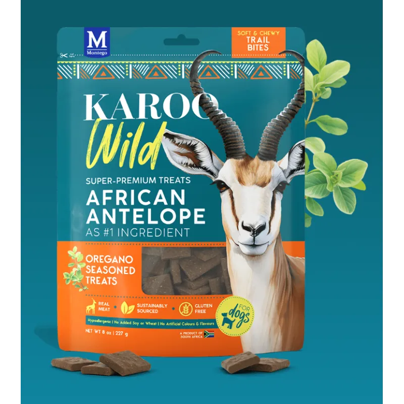 Carne de antílope africano, guisantes, glicerina vegetal, almidón de tapioca, huevo entero en polvo, batata deshidratada, plasma animal, inulina, celulosa, grasas animales, sal, sabor ahumado natural, romero deshidratado, ácido cítrico, aceite de pescado, orégano deshidratado, sorbato de potasio.